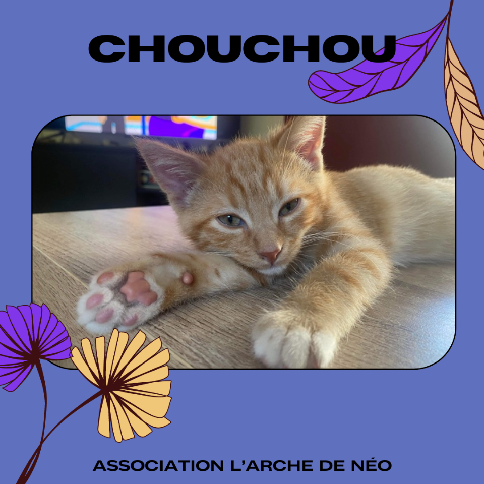 Chouchou sera placé identifié par puce électronique, déparasité (puces et vers), avec la première injection (typhus, coryza ET leucose). Sa stérilisation est OBLIGATOIRE et à votre charge toutefois l'association rembourse 50% des frais engagés sur facture. La stérilisation doit être faite AU PLUS TARD à 6 mois.