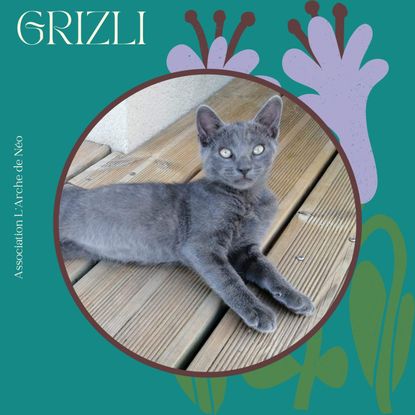 Grizli sera placé identifié par puce électronique, déparasité (puces et vers), avec la première injection (typhus, coryza ET leucose). Sa stérilisation est OBLIGATOIRE et à votre charge toutefois l'association rembourse 50% des frais engagés sur facture. La stérilisation doit être faite AU PLUS TARD à 6 mois.