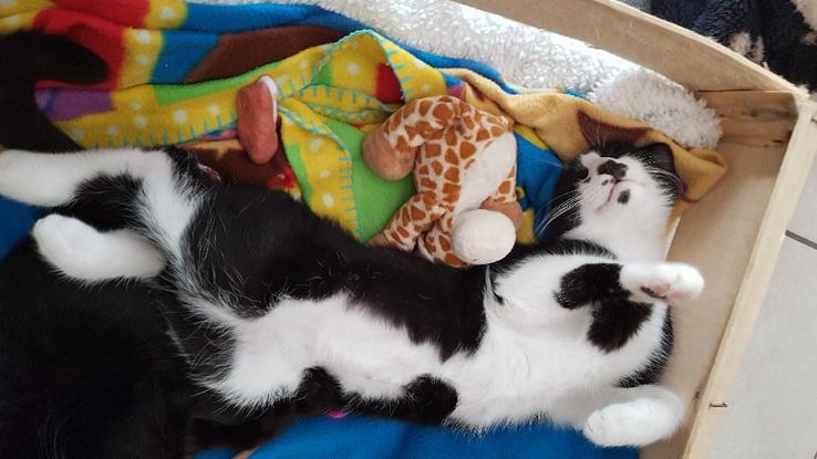 Je suis un adorable chaton de 4 mois et demi, très sociable. Je sais jouer, mais aussi me reposer. J'aime les câlins.