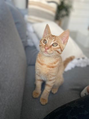 Roocky est un chaton qui était avec ses sœurs et sa maman dehors dans le jardin d’un monsieur. L’association l’a donc pris en charge.
