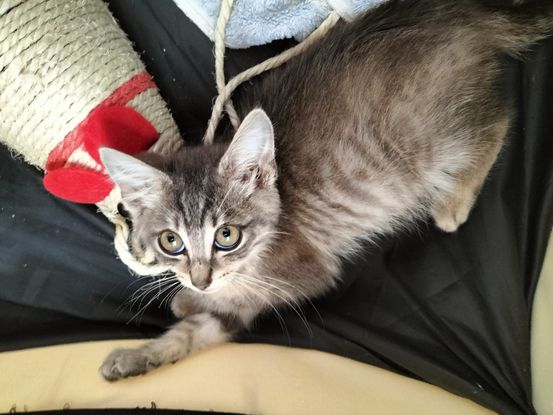 Joli petit chaton de 2,5 mois, timide mais il se détend au fur et à mesure