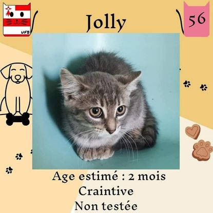 Jolly est une femelle de 2 mois craintive (un comportement normale en fourrière) qui vous attend dans une fourrière du 56. ATTENTION SORTIE AU PLUS TARD LE 26/08/2022 (avant euthanasie) !
