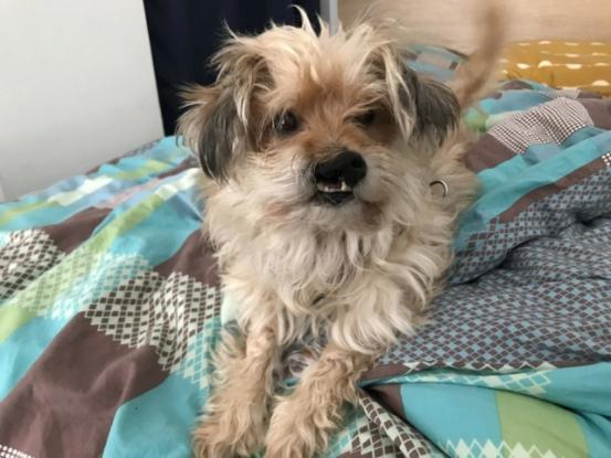 Son museau et sa mâchoire sont déformés sûrement du à de la maltraitance car ça semble "coupé."