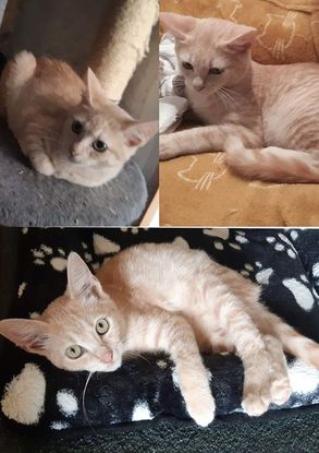 Petite femelle rousse claire issue d' une portée de chatte errante sur un site où nous effectuons des stérilisations avec ses 3 sœurs