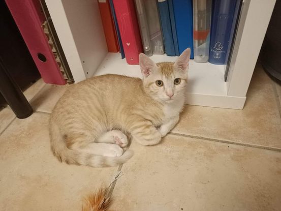 C'est un chaton très joueur encore un peu réservé mais qui apprécie les caresses , très complice avec son frère Tigrou