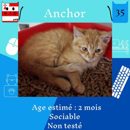 Anchor est un mâle de 2 mois sociable qui vous attend dans une fourrière du 35. ATTENTION SORTIE AU PLUS TARD LE 2/09/2022 (avant euthanasie) !