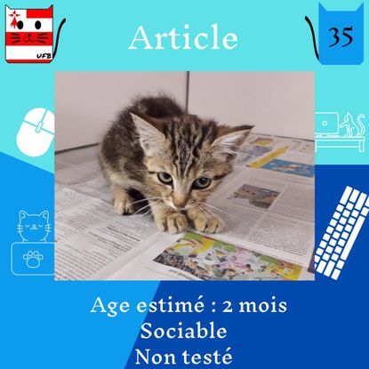 Article est un mâle de 2 mois sociable qui vous attend dans une fourrière du 35. ATTENTION SORTIE AU PLUS TARD LE 2/09/2022 (avant euthanasie) !