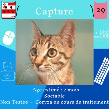 Capture est une femelle de 2 mois sociable qui vous attend dans une fourrière du 56. ATTENTION SORTIE AU PLUS TARD LE 2/09/2022 (avant euthanasie) !