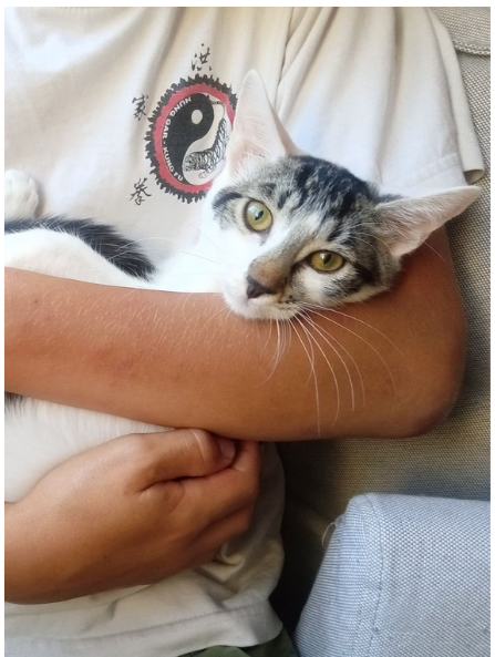 C'est un chaton joueur et qui aime toujours jouer avec les enfants voire avec la queue du chien