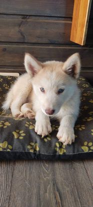 Wapy ,huit semaines et 4.3 kg ..un adorable et magnifique loulou qui cherche une famille avec déjà un chien et de préfèrence une femelle pour lui enseigner les codes canins,et une famille qui connaît les chiens et les Husky en particulier.