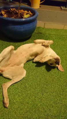 Elle est parfaitement sociable avec ses congénères mais n'aime pas trop les chats.