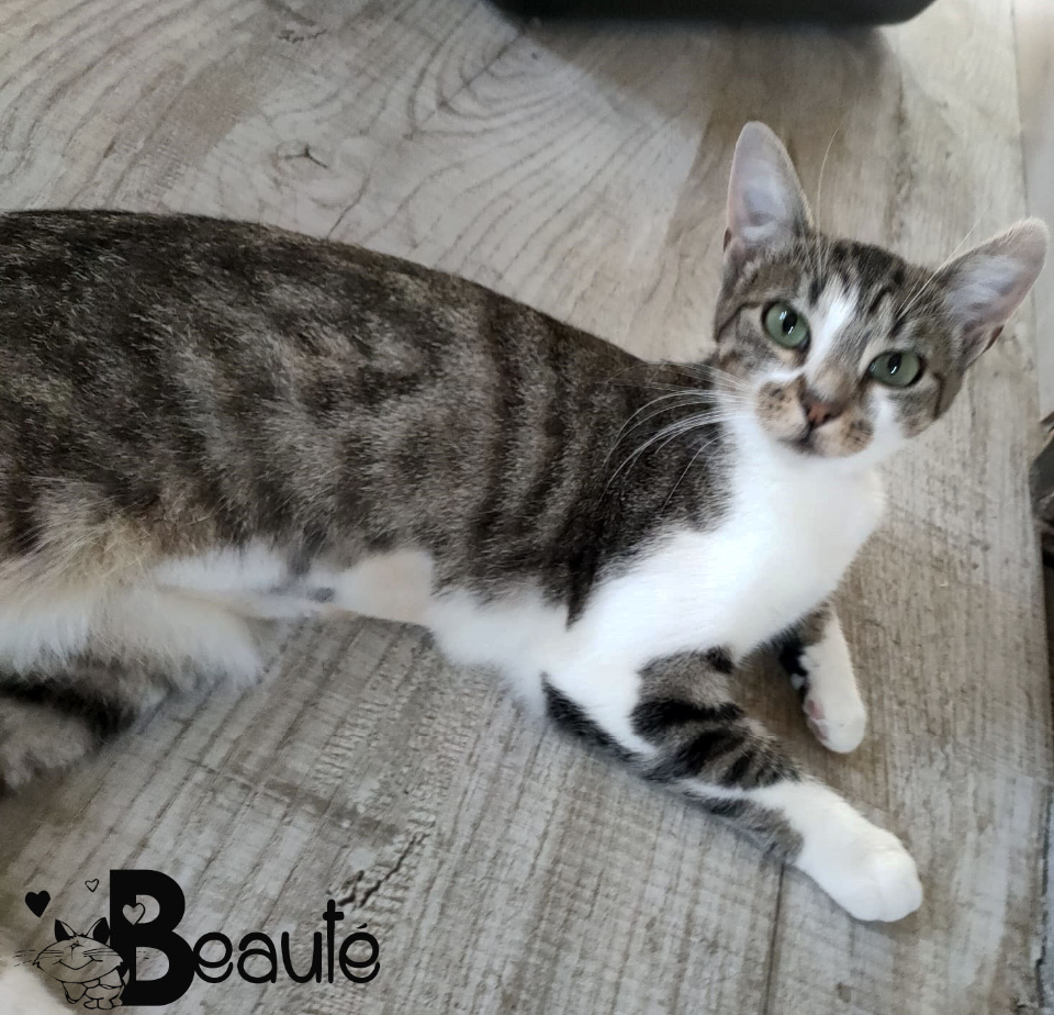 BEAUTE est une super minette très câline . Synonyme de caresses, elle vient automatiquement se frotter contre votre main . Sociable, douce et calme; le vrai petit chat de famille pour votre plus grand plaisir