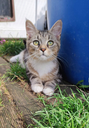 Maya est une jolie tigrée née le 25/04/2022 trouvée dans un état lamentable sur notre commune, avec sa maman sauvage, ses 2 frères, un quatrième chaton était malheureusement décédé sur place... Atteinte d'un gros coryza, pleine de parasites et de gale d'oreilles, elle a totalement guéri et ne garde aucune séquelle. Maya est une petite chipie qui reste trouillarde au premier abord mais fait très vite des câlins et réclame des papouilles. Elle a une petite particularité : les paupières de ses yeux sont tombantes ce qui lui donne un charme fou et elle a des chaussettes blanche seulement a l'arrière. A adopter par 2 ou avec au moins un autre chat dans son futur foyer.