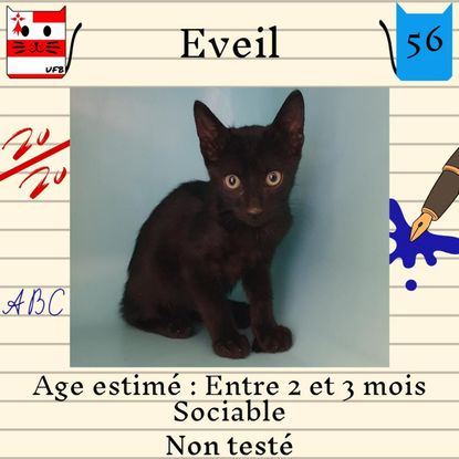 Eveil est un mâle de 2-3 mois sociable qui vous attend dans une fourrière du 56. ATTENTION SORTIE AU PLUS TARD LE 9/09/2022 (avant euthanasie) !