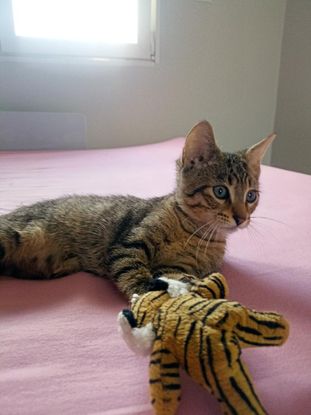 Tempo est un petit chaton très dégourdi. Un peu méfiant au départ, avec de la patience il fait rapidement confiance.