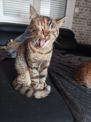 LEMPICKA, jolie minette tigrée avec des touches de roux de 5 mois, issue d'une portée de 4 chatons dont ses 2 soeurs également à l'adoption