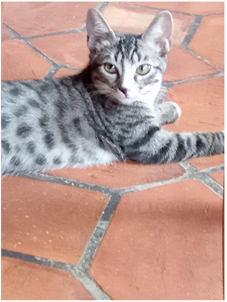 Voici Gus, c'est un grand chaton tigré mackerel, longiligne et haut sur pattes, très joueur.