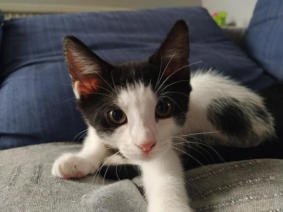 Tomi est un chaton très vif qui adore embêter ses frères et sœur lorsqu'ils dorment. Il aime bien jouer à la bagarre avec son frère Max. Il est vif et est toujours partant pour les câlins!