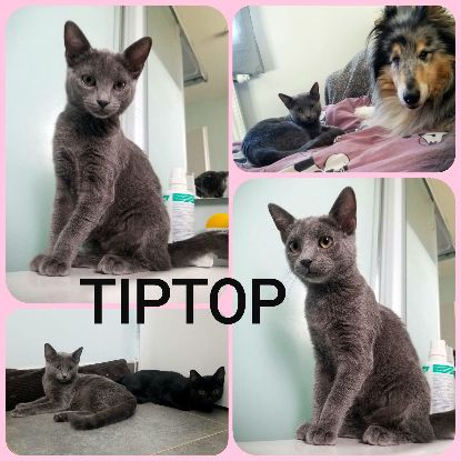 Tip top est une chatonne grise, encore un peu timide tout comme Théa