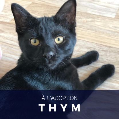 Thym est identifié par puce électronique, primovacciné TCL et déparasité. Stérilisation obligatoire à 6 mois.