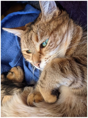 Bonjour ! Moi je suis Persée, je suis craintive mais je suis de plus en plus en confiance avec les humains. Si je ne les connais pas, II faut juste que ceux-ci soient calmes et doux avec moi et qu'ils n'essaient pas de me porter ou de me caresser ailleurs que la tête et le cou. Sinon, je crache et m'en vais. L'agitation ou les gestes brusques me font peur aussi. En présence d'enfants je reste cachée. J'apprécie beaucoup quand l'humain de la maison est là. Ce que je préfère le plus au monde c'est de me coller à lui pour avoir des papouilles. J'aime aussi beaucoup le suivre dans l'appartement et l'observer. Je suis assez curieuse. Quand le balcon m'est accessible : je m'y pose volontiers pour flemmarder ou pour regarder ce qu'il y a en bas. Un jardin me ferait peut être du bien mais je ne pense pas que j'irai bien loin parce que le confort de l'intérieur est quand même chouette après mon début de vie à la rue !
