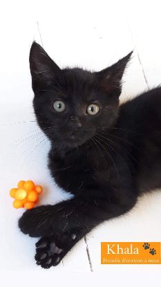 Khala (ou Chipie pour les intimes) est une femelle d’environ 2 mois et demi / 3 mois.
