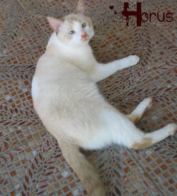 Il est très gentil, très câlin et a beaucoup d'amour à donner, tellement qu'HORUS a tendance à mordiller la main. Aucune méchanceté là dedans, au contraire, cependant il faudra lui faire comprendre doucement que ce n'est pas un comportement approprié  HORUS aime beaucoup les chatons! Petit papa poule