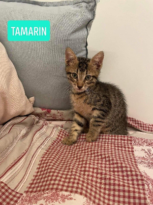 TAMARIN 2 mois un petit chaton très curieux et très vivant qui n’a peur de rien, il aime faire la course avec ses frères et escalader tout ce qui est à sa portée. Un vrai aventurier, il est aussi proche de l’humain, et viendra sans hésiter faire sa sieste à vos pieds ou tout simplement se poser près de vous pour un temps calme. Il se laisse porter très facilement mais apprécie encore plus les moments de jeux.