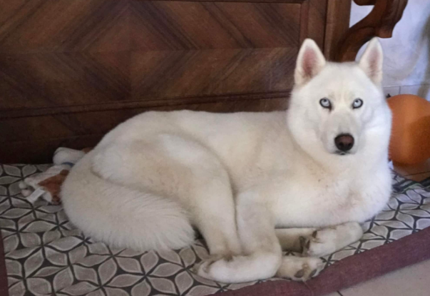 C'est une femelle Husky de Sibérie retraitée d'élevage.
