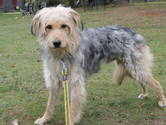 Pierrot est arrivé de l'ile de La Réunion. Il a été trouvé squelettique et en mauvais état mais aujourd'hui grâce aux bons soins de sa famille d'accueil, il va bien. Il est âgé de 2 ans et pèse 17 kilos. Il est de taille moyenne.