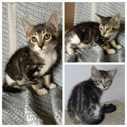 Son histoire et celle de sa maman et ses 4 frères et sœurs est l' histoire d' une énième portée d' une chatte errante ... qui finit par trouver refuge sous les poubelles à la vue de tous pourtant... ils ont eut de la chance... nos bénévoles passant par là ont fait leur petite enquête après avoir capturé les chatons d à peine 1 mois et demi et ont réussit avec l' aide précieuse de la gentille dame qui nourrit la minette à la capturer afin qu elle soit mise en règle et continue le sevrage de sa jolie tribu.