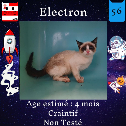 Electron est un mâle de 4 mois craintif (un comportement normal en fourrière) qui vous attend dans une fourrière du 56. ATTENTION SORTIE AU PLUS TARD LE 07/10/2022 (avant euthanasie) !
