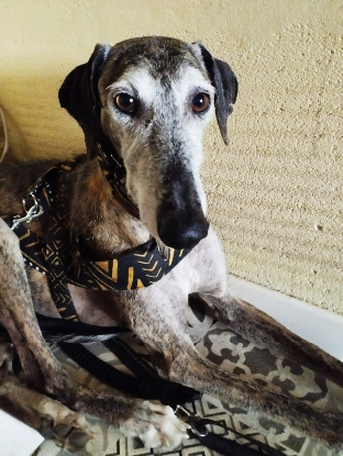 Tom a servi pour la chasse pendant les 4 premières années de sa vie sans recevoir beaucoup d'attention et encore moins d'amour. Il porte le poids de son début de vie difficile et paraît plus vieux que son âge réel. C'est un gentil galgo qui reste anxieux et aura besoin d'une famille calme qui saura lui redonner le goût à la vie. Dans sa famille d'accueil, il a découvert et apprécie désormais les promenades. Il a besoin de compagnons bien dans leurs patounes.