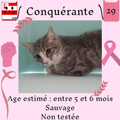 Conquérante, femelle de 5-6 mois sauvageonne (un comportement normal en fourrière) qui vous attend dans une fourrière du 29. ATTENTION SORTIE AU PLUS TARD LE 14/10/2022 (avant euthanasie) !