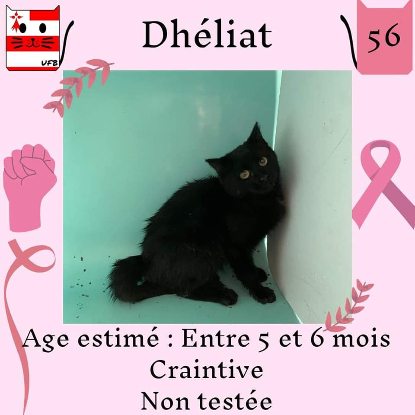 Dhéliat, femelle de 5-6 mois craintive (un comportement normal en fourrière) qui vous attend dans une fourrière du 56. ATTENTION SORTIE AU PLUS TARD LE 14/10/2022 (avant euthanasie) !