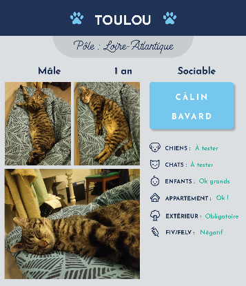 Salut tout le monde, moi c'est Toulou, je suis un jeune chat adulte d'environ 1 an qui croque la vie à pleine dents !