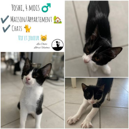 Un beau chaton noir et blanc, joueur et vif, avec qui il est impossible de s'ennuyer. Un chaton qui sait aussi profiter de ses moments de sieste pour réclamer des caresses, chercher le contact humain ? La famille d'accueil ne vous dira pas le contraire : Yoshi est un chaton adorable et plein d'amour ❤