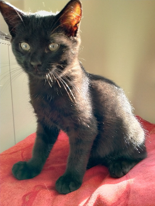 Grand chasseur de mouches , c'est un chaton sportif qui a besoin de se dépenser . Il aime les caresses mais c'est lui qui décide ...