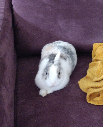 Comportement : Toupou est une petite lapine qui aime les câlins mais que quand elle le décide. C’est une lapine expressive qui sait montrer quand elle n’est pas contente mais aussi quand elle est joyeuse. Curieuse, elle n’aime pas être portée mais ne dira pas non à une petite sieste sur le canapé ou le tapis ! Elle est sociable avec les autres animaux et elle joue parfois avec le chat de la FA qui lui fait sa toilette.
