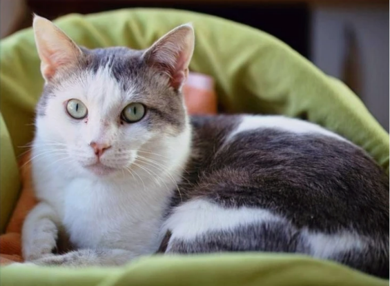Ce beau chat au pelage gris et blanc a été trouvé dans le jardin d'une dame, très affamé et amaigri. Il a été placé par une association à Antony chez une FA qui en comptait déjà dix ! Un SOS a été lancé pour que la plupart des chats soient pris en charge, c'est ainsi que DOUGLAS a été transféré chez nous.