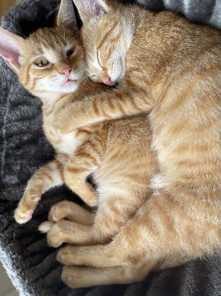 Ils sont nés le 7Juin 2022. Leur maman est Amana, chatte errante trouvée gravement blessée à une patte.