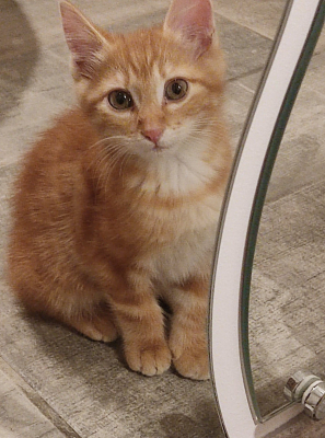 Taï est un jeune chaton roux d’environ 3 mois. Très sociable, il adore les câlins et les bisous ! Très joueur, il a besoin de présence et qu’on s’occupe de lui. Il a tendance à mordiller, mais en le reprenant régulièrement, cette mauvaise habitude passera. Bavard, il appelle pour réclamer de l’attention. Il est propre.