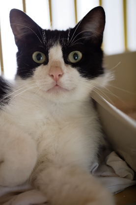 Cette jeune maman au pelage noir et blanc a été trappée avec ses 5 chatons à l'école maternelle Les Tulipes à Fresnes suite à un signalement.