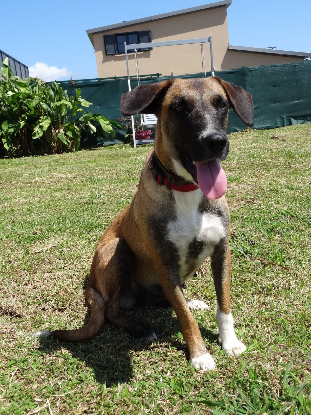 Tosca est actuellement sur l'ile de La Réunion. Elle est âgée de 18 mois et pèse 23 kilos. Elle est de taille moyenne.
