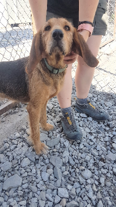 Belle une croisée bruno du Jura de gabarit moyen (17kg) de 3 ans. Elle est timide au premier abord mais se montre très douce lorsqu'elle connait la personne. Elle est sociable avec ses congénères. Elle n'a jamais connu la vie en maison mais ne demande que ça !