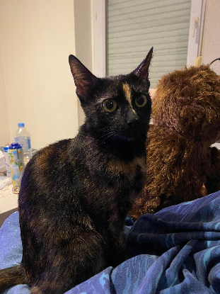 Rumba, écaille de tortue très gentille. C'est une boule d'amour, elle adore les enfants. Elle est sociable et propre. Le moment du repas est sacré pour Mme.?