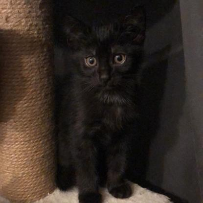 Beaucoup plus aventurier que son frère, il est très actif et passe beaucoup de temps à jouer et escalader partout. On se s’ennuie pas avec lui ! Il aime aussi les caresses et est très curieux, il vous suivra et vous observera dans vos activités tout au long de la journée.