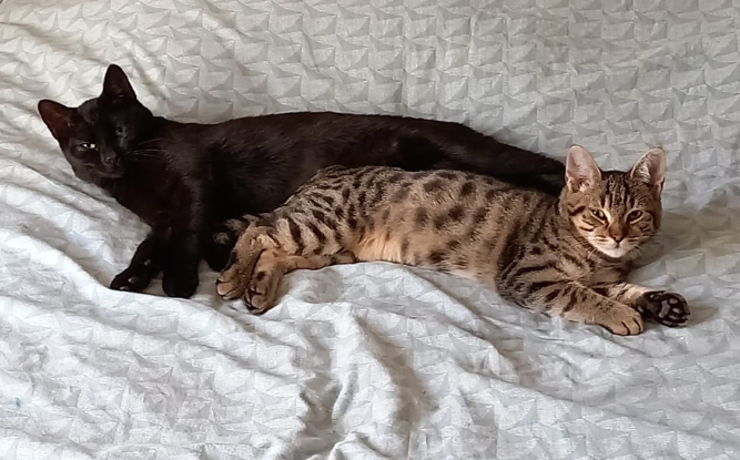Adoption double : Tipi, noire, et Toz, tigré.