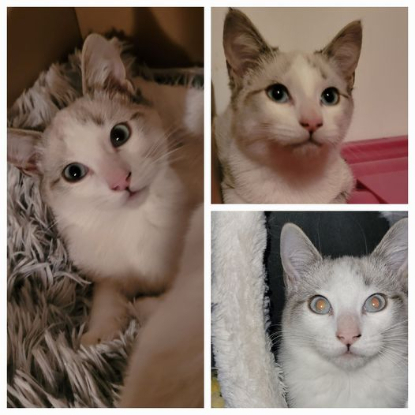 Issue d'une portée de 3 chatons sur un site de trappage sur lequel la maman a pu être mise en règle et stérilisée. Sa soeur est déjà réservée et Tabasco le petit cœur au sens littéral vous sera bientôt présenté