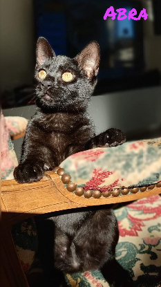 Abra est une petite femelle, très curieuse et un peu têtue. Elle adore être près des humains. C'est simple, elle ronronne dès qu'on la touche !